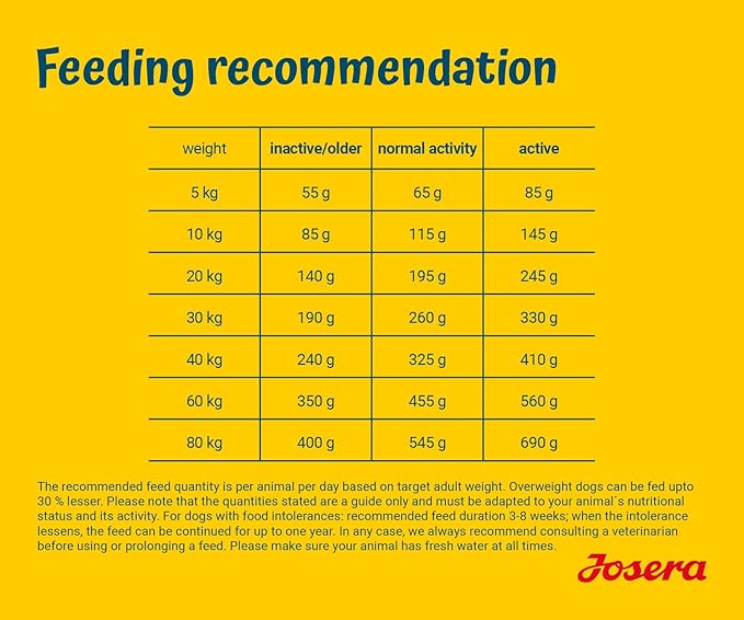 غذای سگ جوسرا هایپوآلرژنیک در وزنهای مختلف (مانند ۱۰ کیلوگرم و بستههای کوچکتر) عرضه میشود.