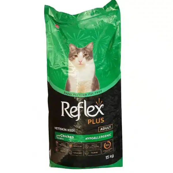 🍗غذای گربه رفلکس پلاس با طعم مرغ و برنج: فرمولاسیون کامل سوپرپرمیوم برای انرژی و شادابی روزانه (Reflex Plus Adult Chicken & Rice)