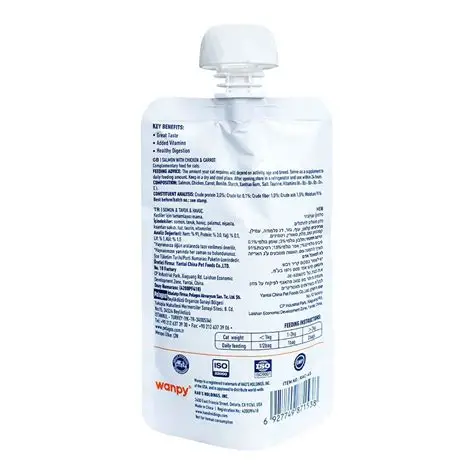 فرمولاسیون پودینگ گربه Wanpy سالمون و مرغ و هویج به گونه‌ای طراحی شده که علاوه بر طعم بی‌نظیر، فواید تغذیه‌ای مهمی را نیز به رژیم غذایی گربه اضافه کند.